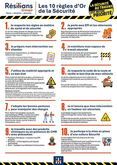 Afin de renforcer notre culture Sécurité, Résilians met en place 10 Règles d’Or de la Sécurité - principes fondamentaux applicables dans 100 % des situations de travail.